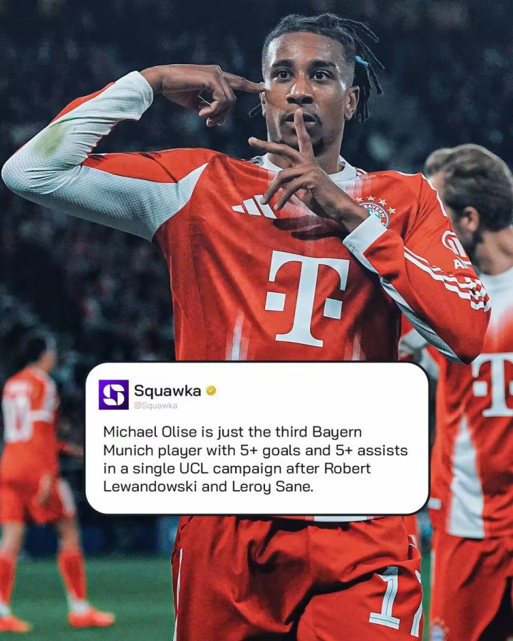 【3】奥利塞成为莱万和萨内之后,拜仁仅第3位在单季冠军联赛贡献5+进球和5+助攻的球员。
