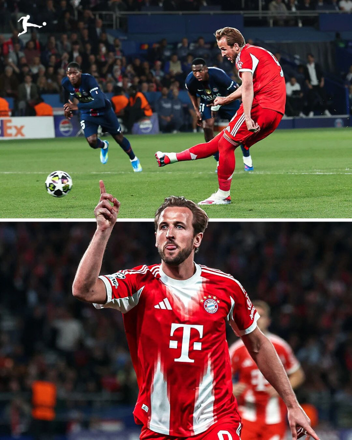 2025-26赛季欧冠半决赛首回合,拜仁客场对阵巴黎圣日耳曼,凯恩打进1球。