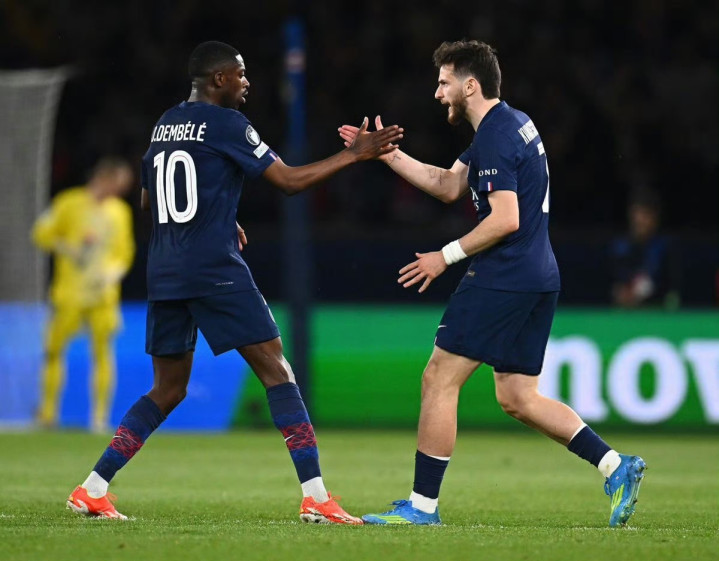 第58分钟杜埃传球,登贝莱闪开角度低射近角撞柱入网,巴黎5比2。
