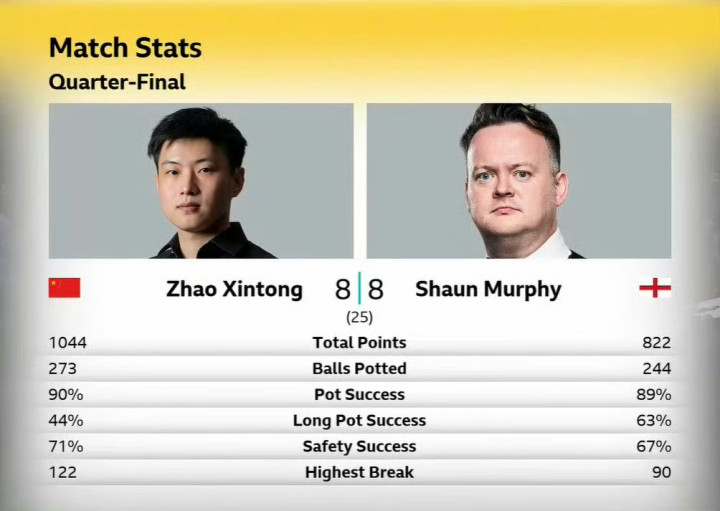 斯诺克世锦赛 | 悬念拉满!赵心童8-8追平墨菲,双方今晚决胜四强