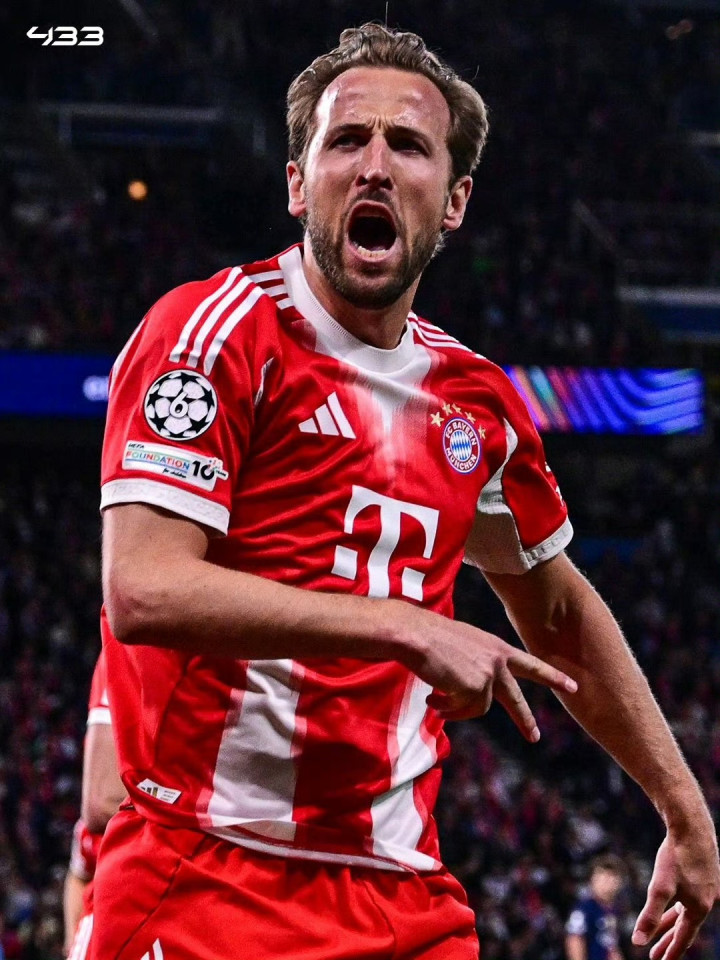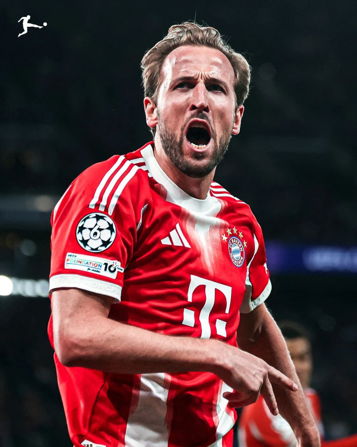 2024-25赛季欧冠1/8决赛首回合,拜仁主场对阵勒沃库森,凯恩打进2球。