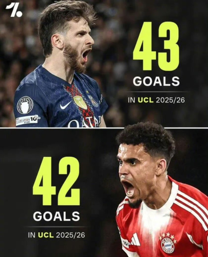 巴黎43球、拜仁42球,欧冠首次单赛季两队进球数突破40大关